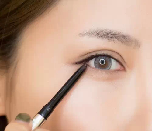 Step8: 接著用深色的眼線筆在睫毛線處暈一條柔柔的眼線,目的是拉長眼尾。