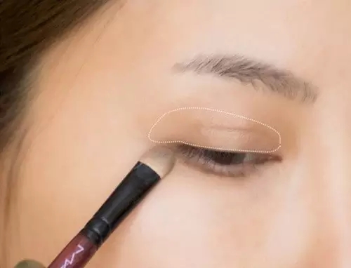 Step2:為了給眼部鼻梁制造“陰影感”,我們要用啞光咖啡色眼影做打底,沒有啞光咖啡眼影的,也可也用眉粉代替,那怎么用呢?整個(gè)眼窩都要鋪開,除了空出一點(diǎn)眉骨。